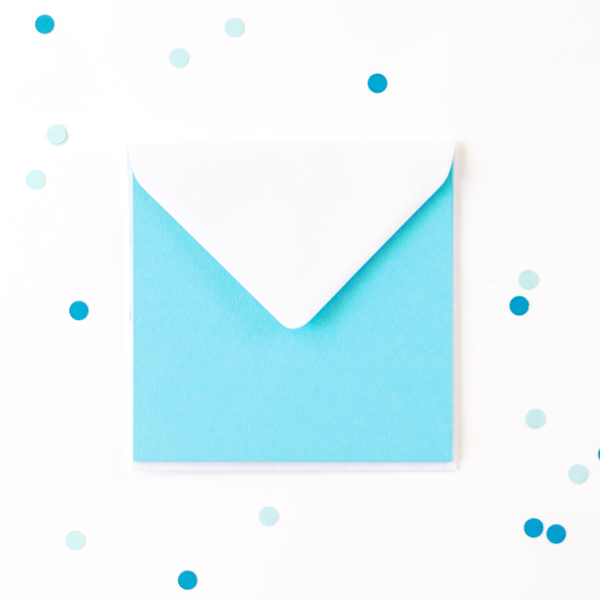 Envelope: 15.5cm x 15.5cm (6.1in), gummed diamond flap