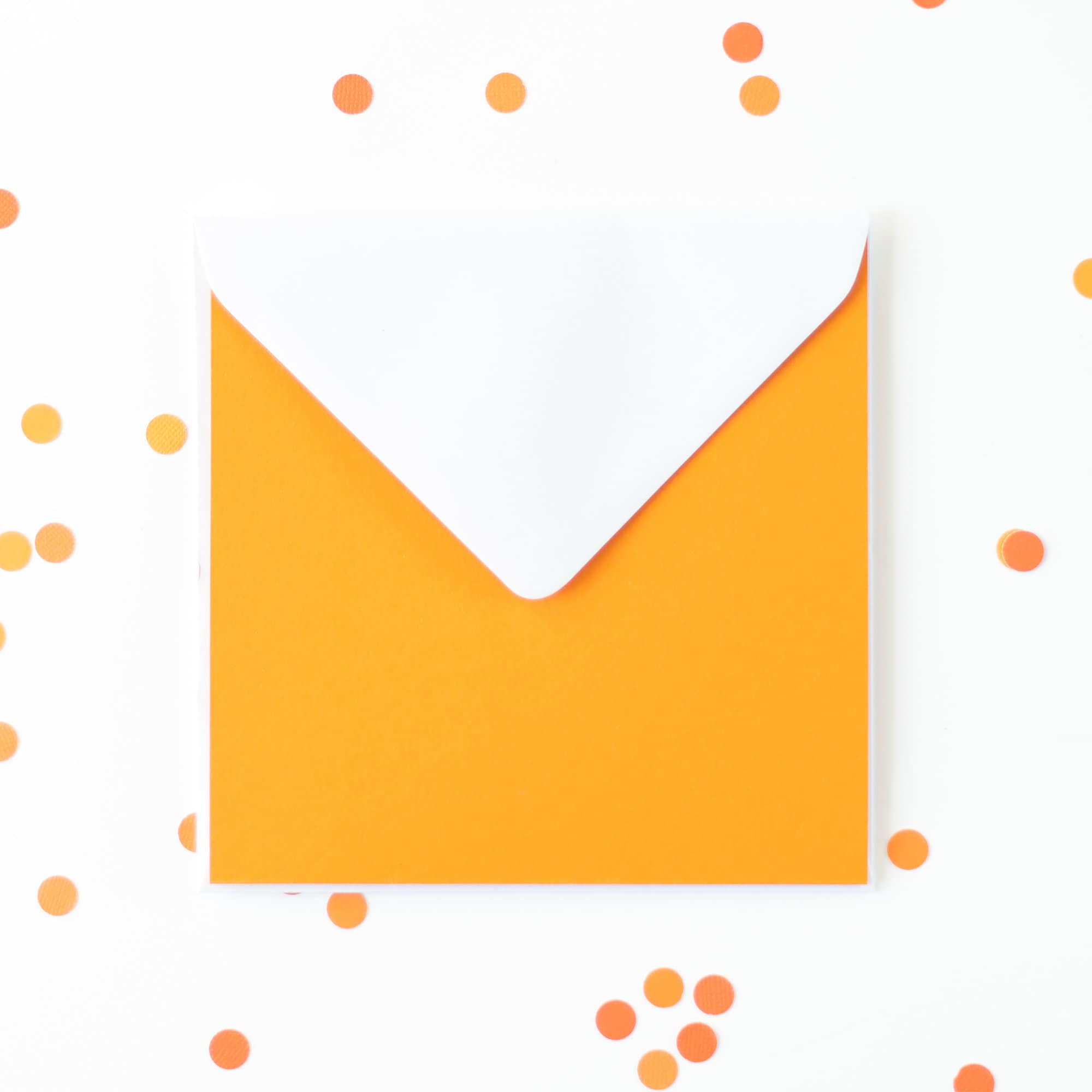 Envelope: 15.5cm x 15.5cm (6.1in), gummed diamond flap