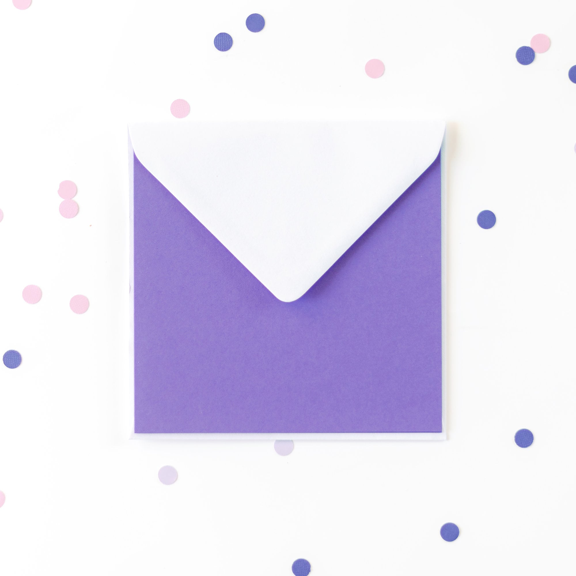 Envelope: 15.5cm x 15.5cm (6.1in), gummed diamond flap