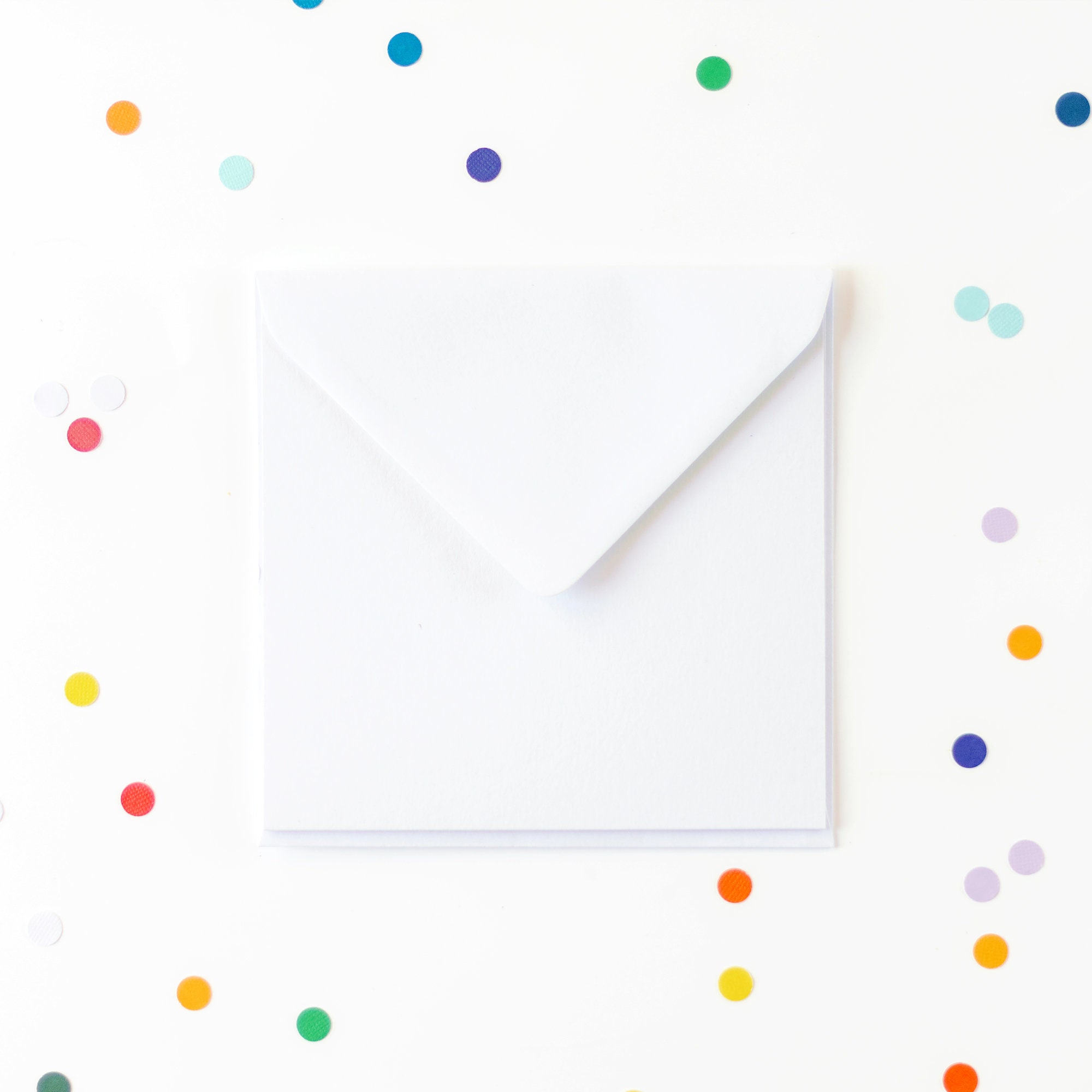 Envelope: 15.5cm x 15.5cm (6.1in), gummed diamond flap