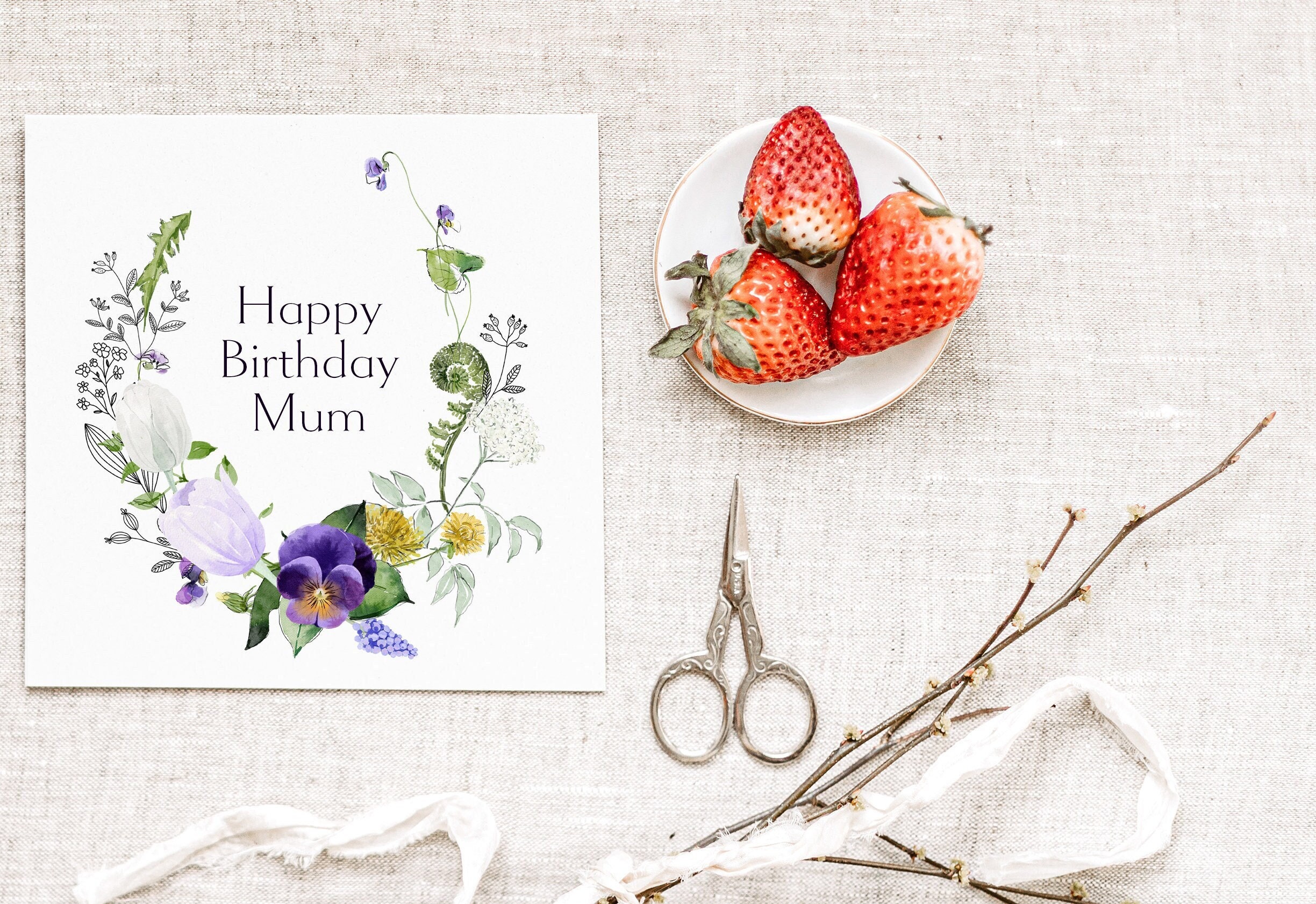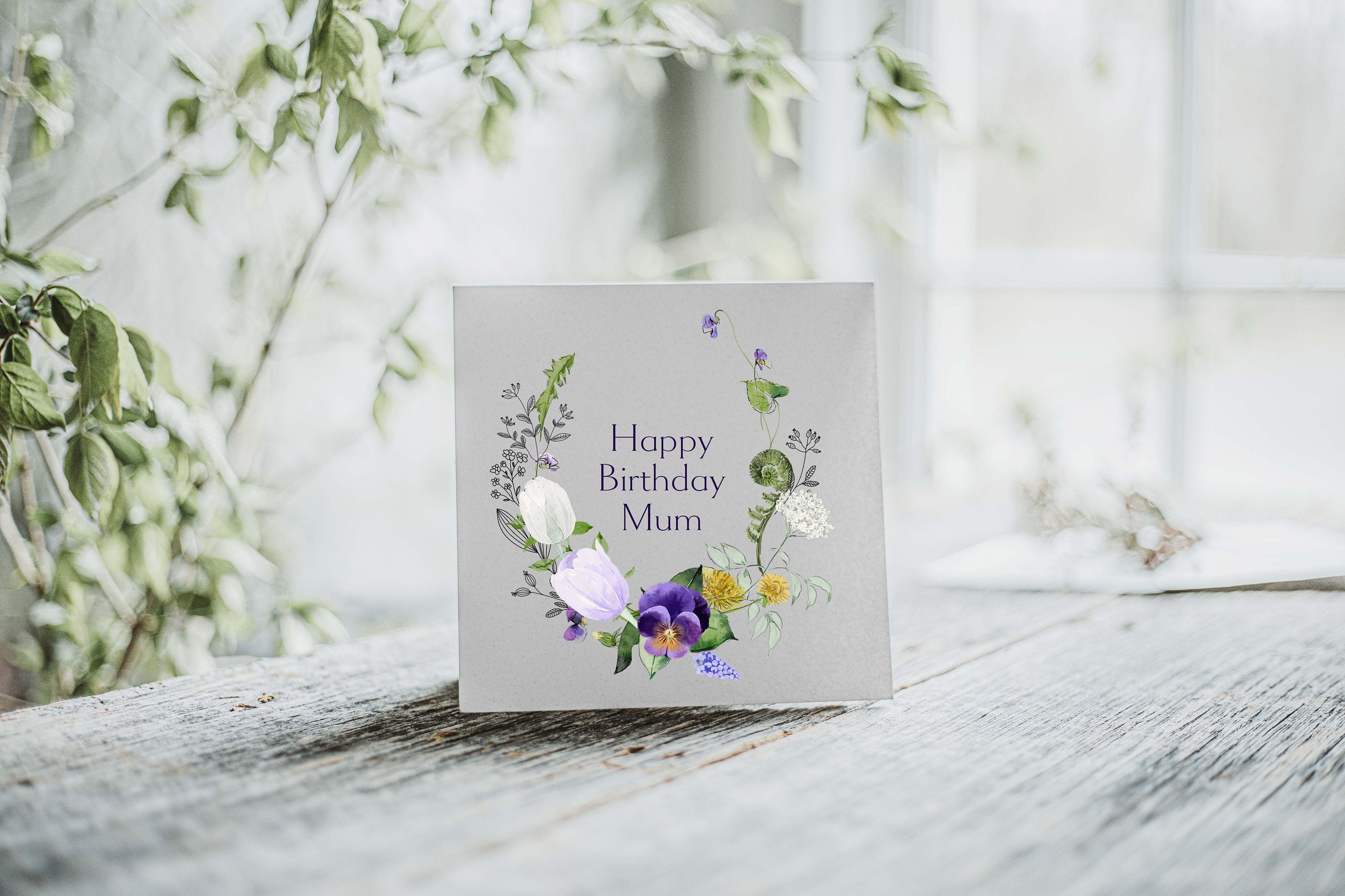 Personalised floral square birthday card, Personalised floral birthday card, Customised card, birthday card for her, greetings card, female birthday, card for mum, friend, sister