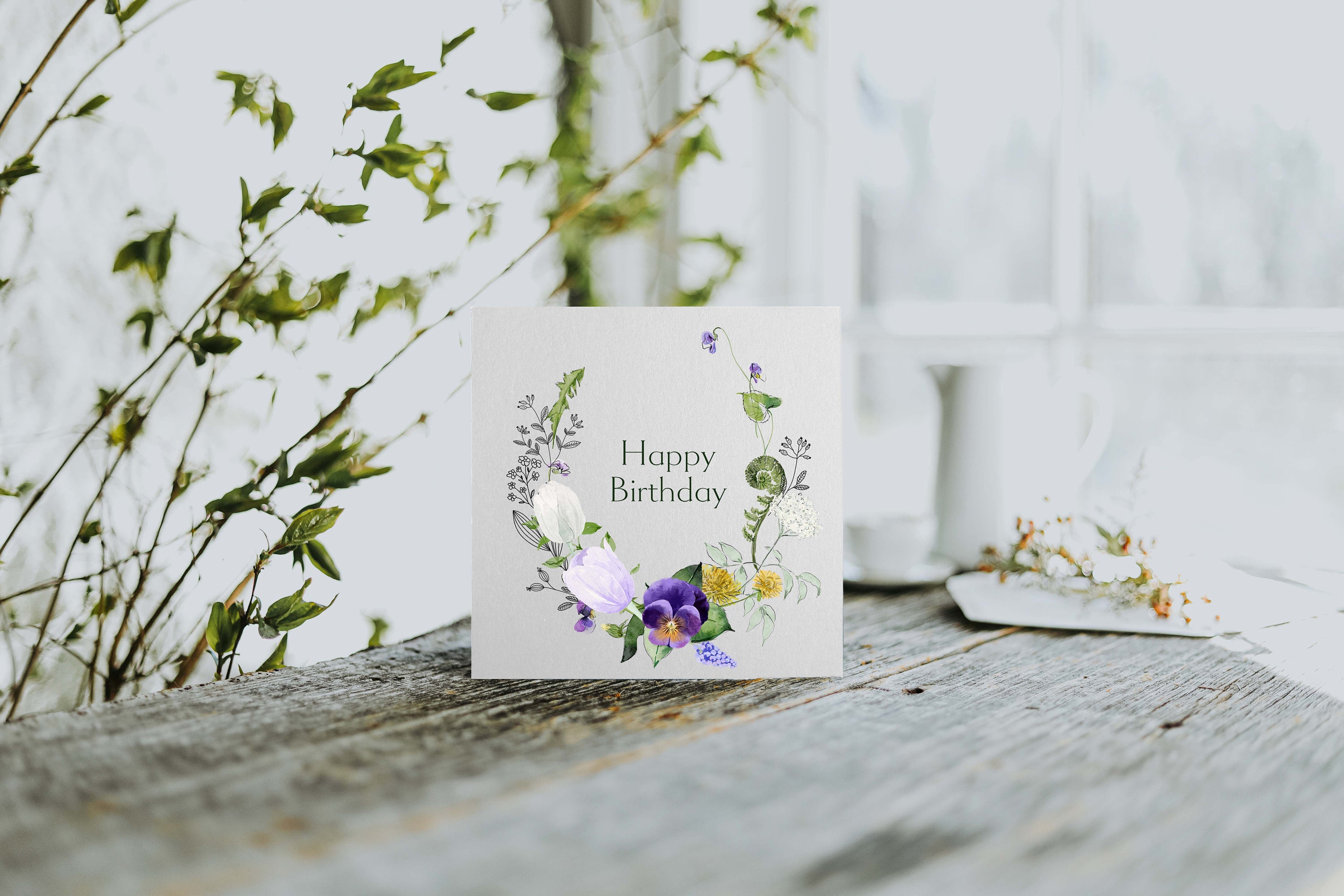 This beautiful eco friendly Birthday Card, including envelope is ideal for greetings cards including wedding cards, birthday cards, anniversary cards, ideal for any very important date. You can purchase this card as it is, or with custom text on the front and inside.