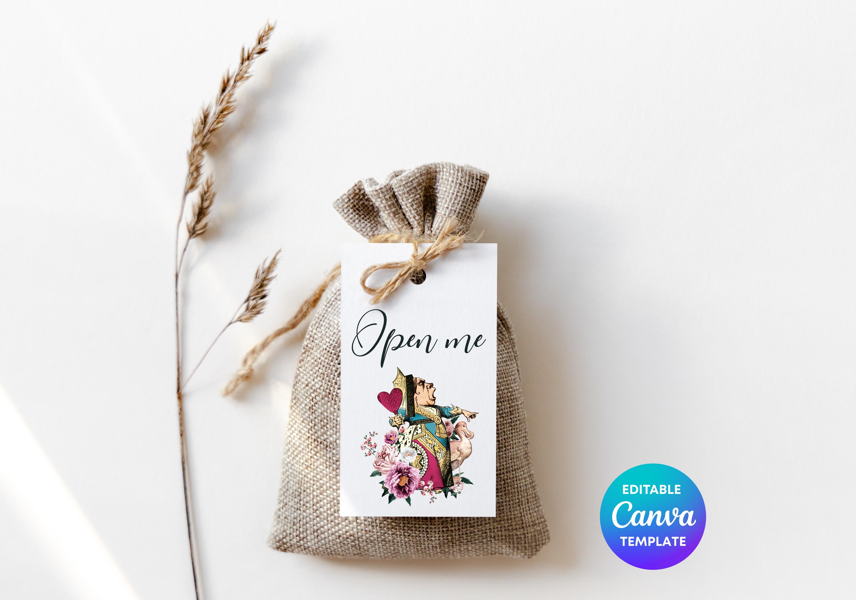 Make a bold statement with this striking Queen of Hearts Alice in Wonderland gift tag. Featuring a classic-style illustration inspired by the iconic ruler, this editable tag can be personalised in Canva and printed instantly. Perfect for party favors, tea parties, and whimsical celebrations, and part of a larger Alice in Wonderland themed tag set available in the shop.