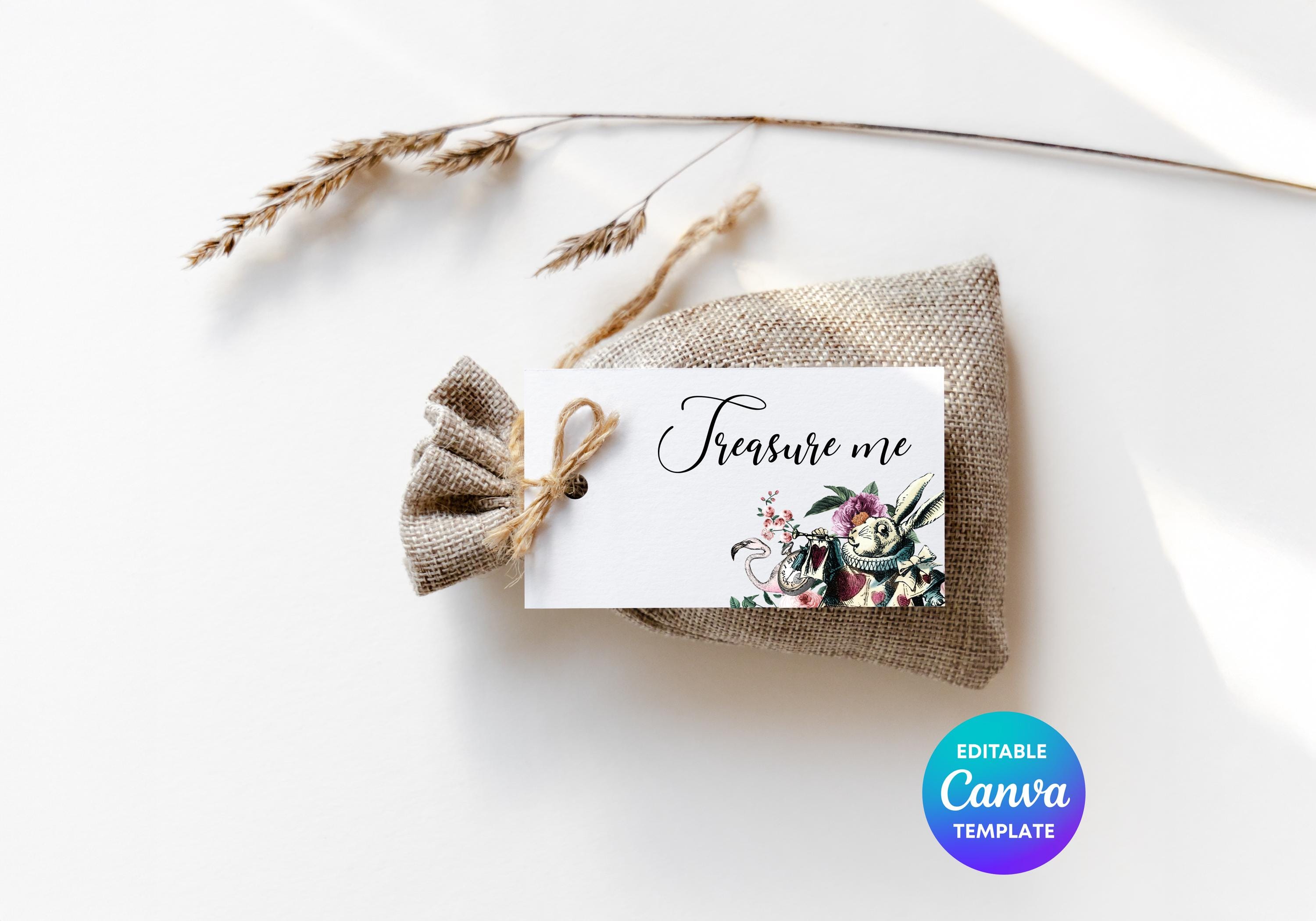 “I’m late, I’m late…” bring playful Wonderland energy to your celebration with this White Rabbit gift tag. Featuring a classic-style illustration and iconic quote, this editable tag can be personalised in Canva and printed instantly. Perfect for tea parties, birthdays, and whimsical events, and part of a larger Alice in Wonderland themed tag set available in the shop.