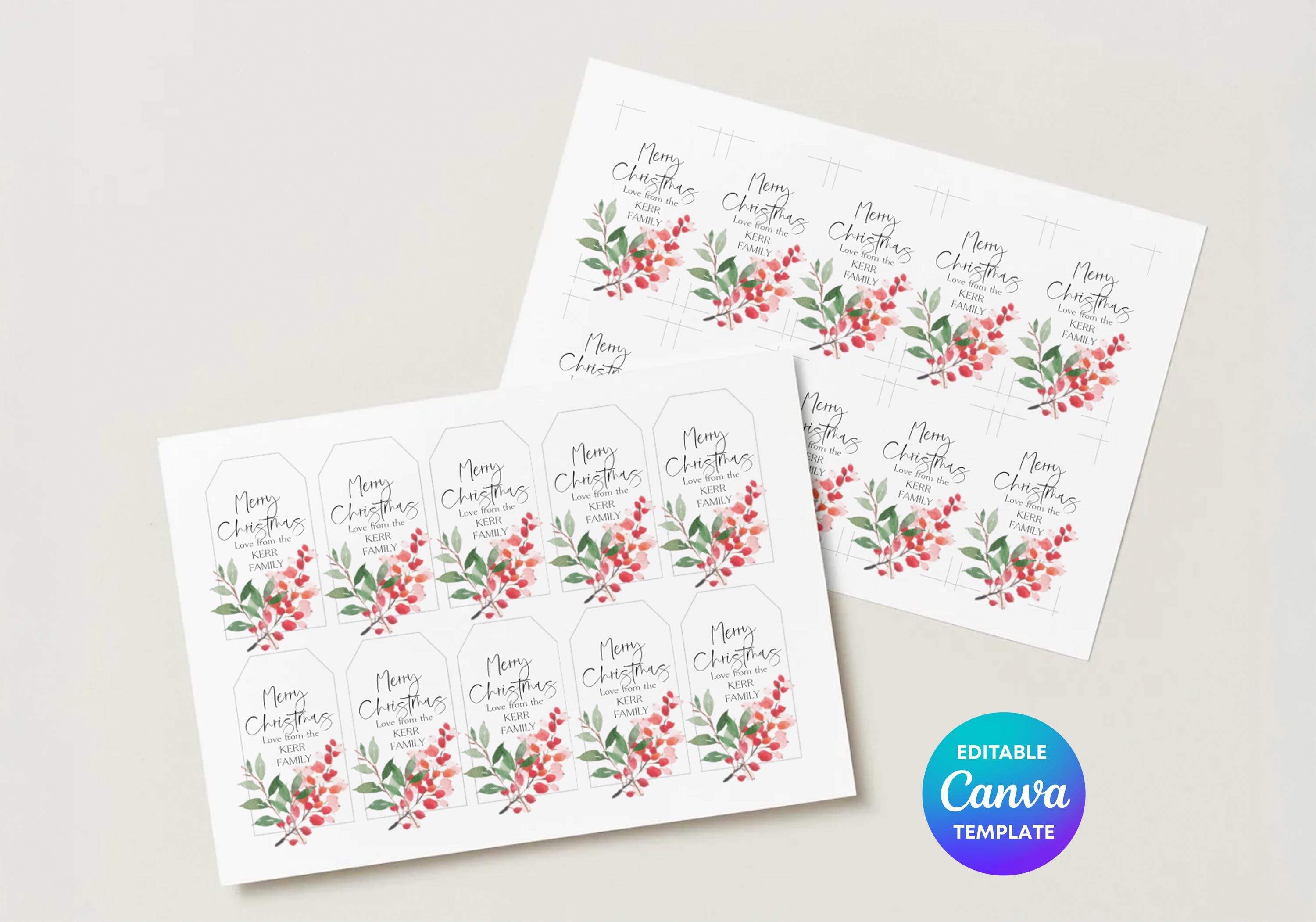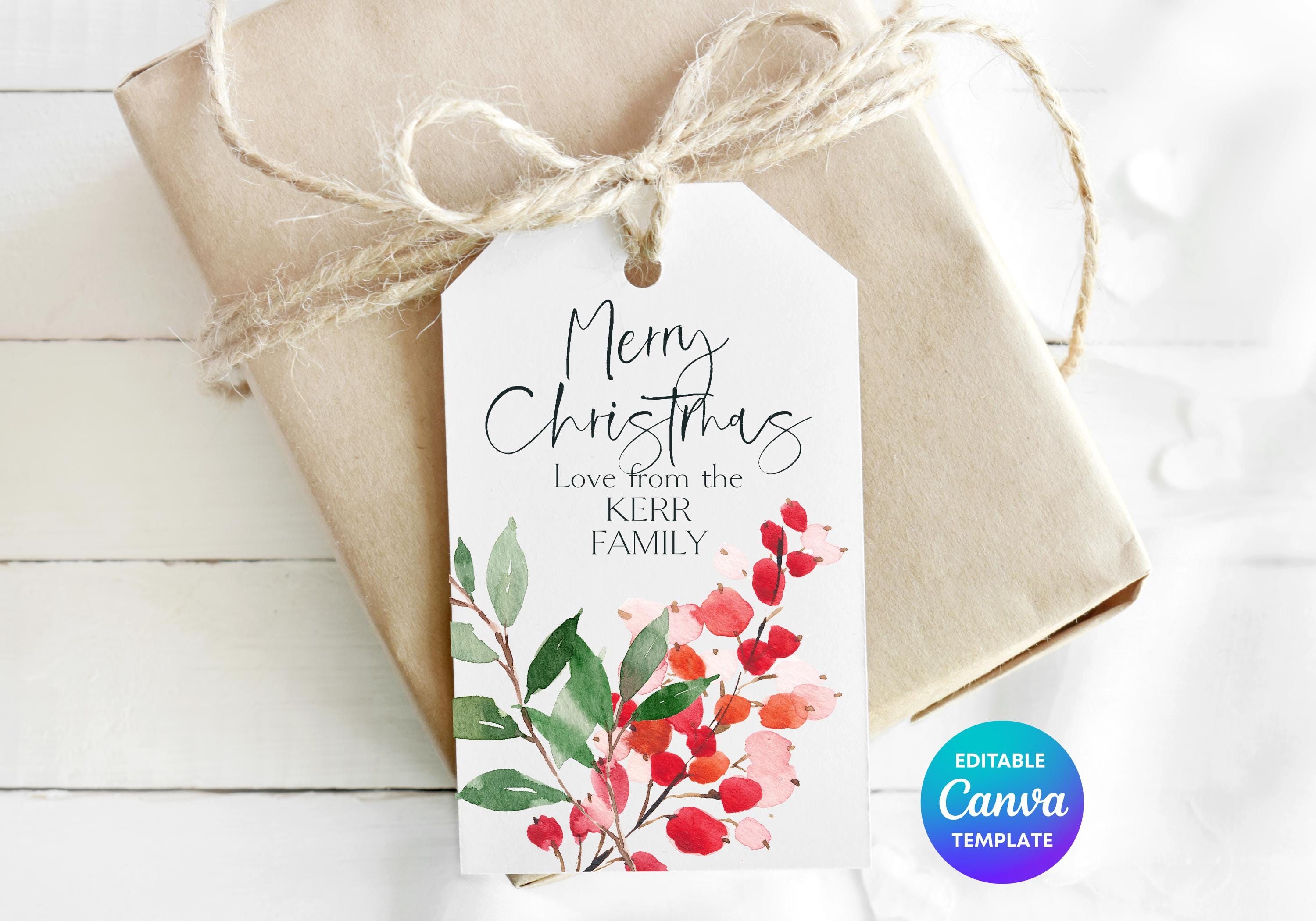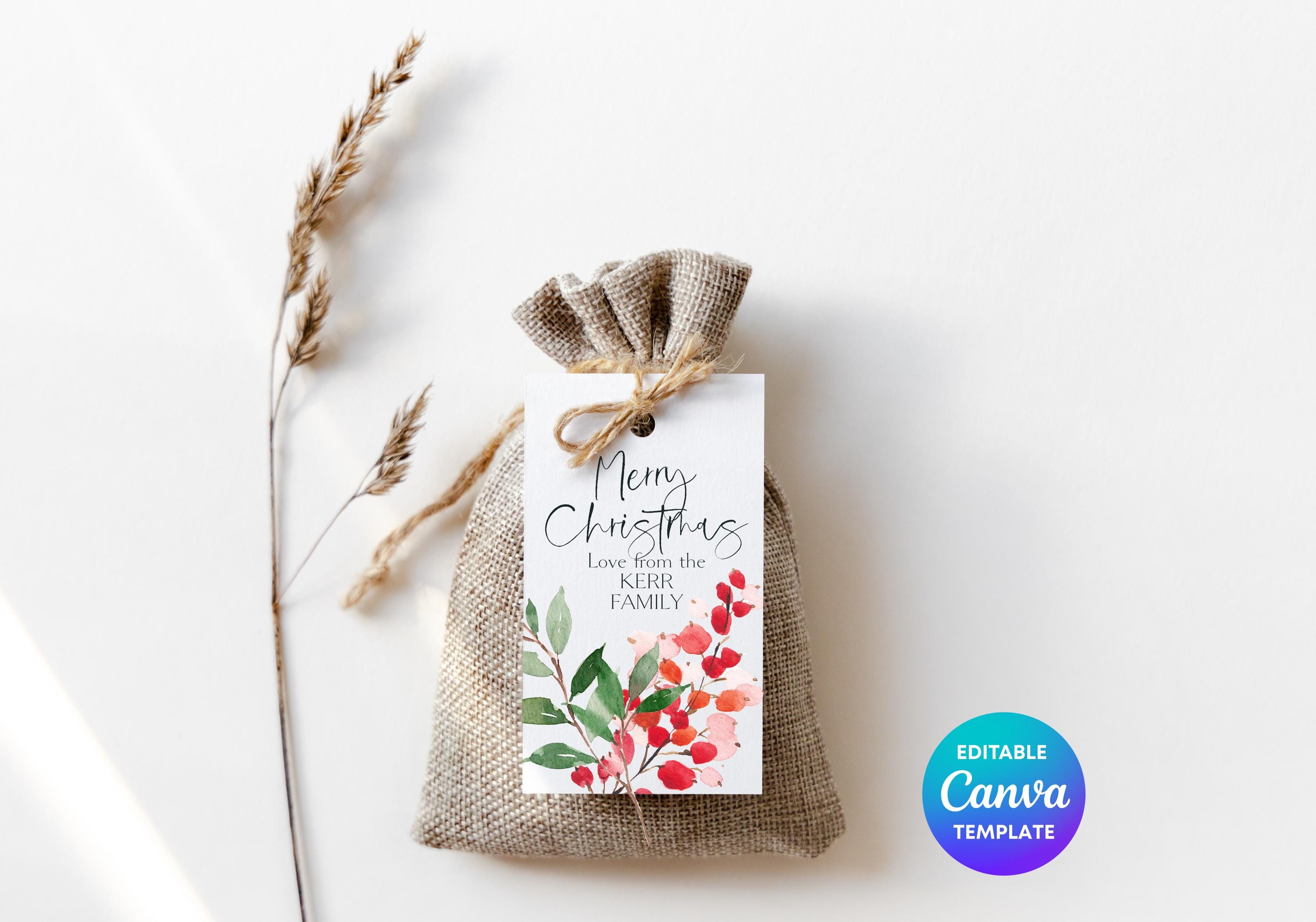 This is a digital, fully editable printable gift tag template. Your files are available immediately after purchase and can be personalised using Canva, a free and easy to use online design tool that works in your browser and on mobile or tablet devices. No software or font downloads are required.
