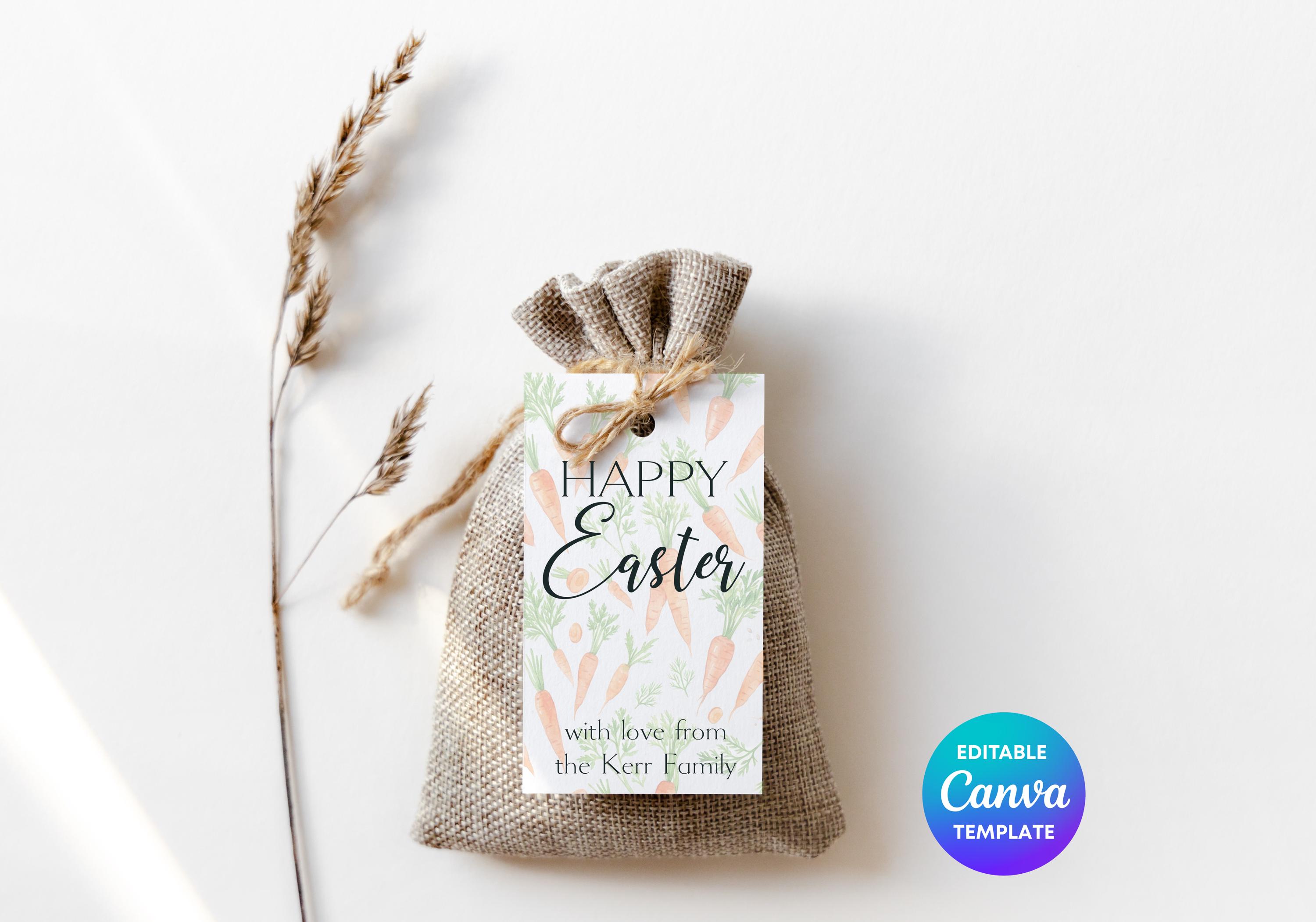 Add a playful touch with this carrot Easter gift tag, perfect as a personalised Easter tag for baskets, gifts, and spring celebrations.