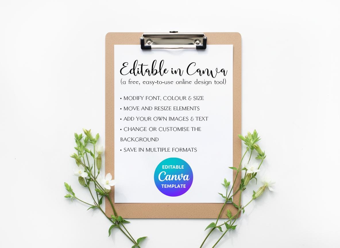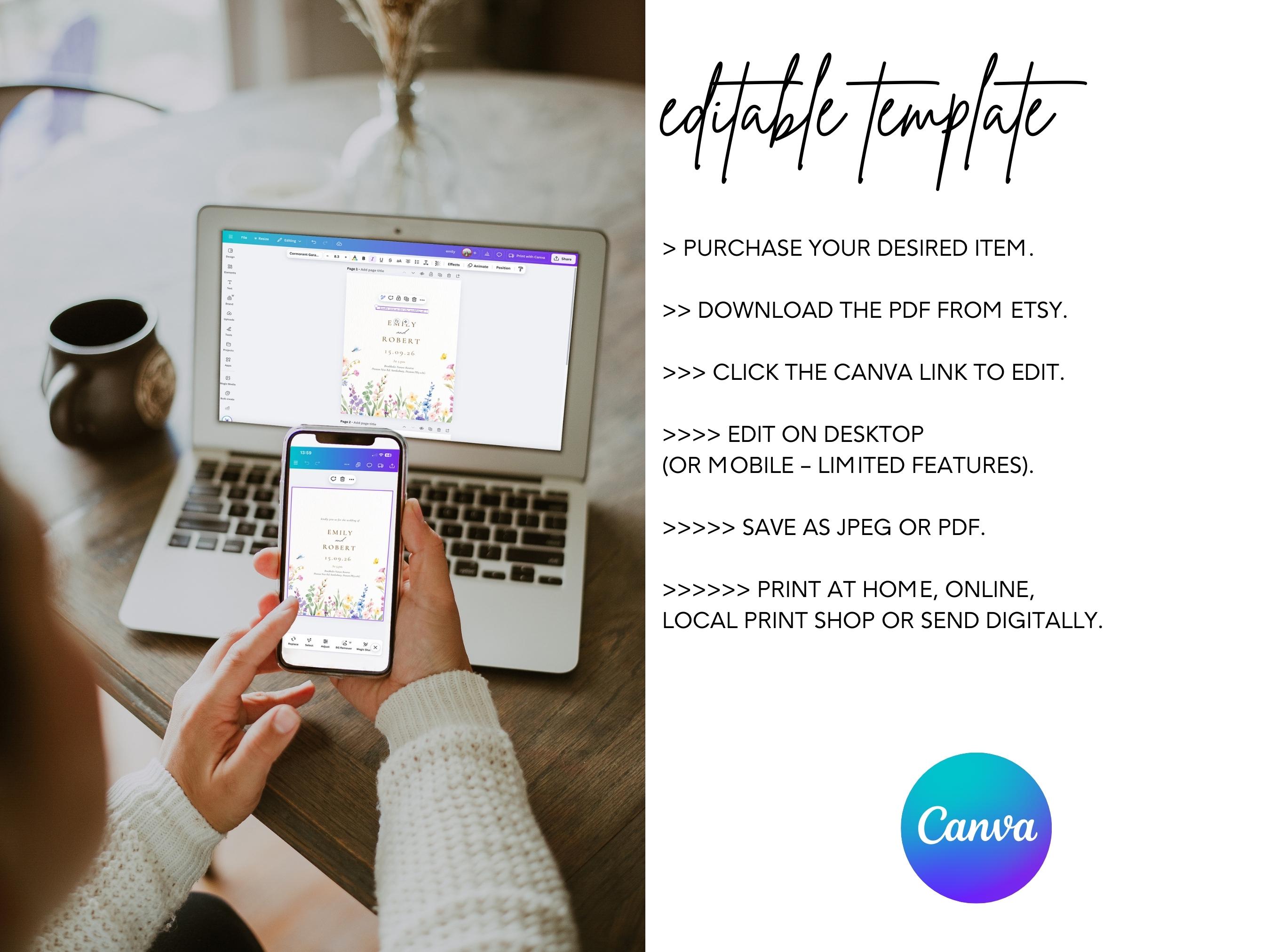 You will receive a digital download containing a link to your editable Canva template.